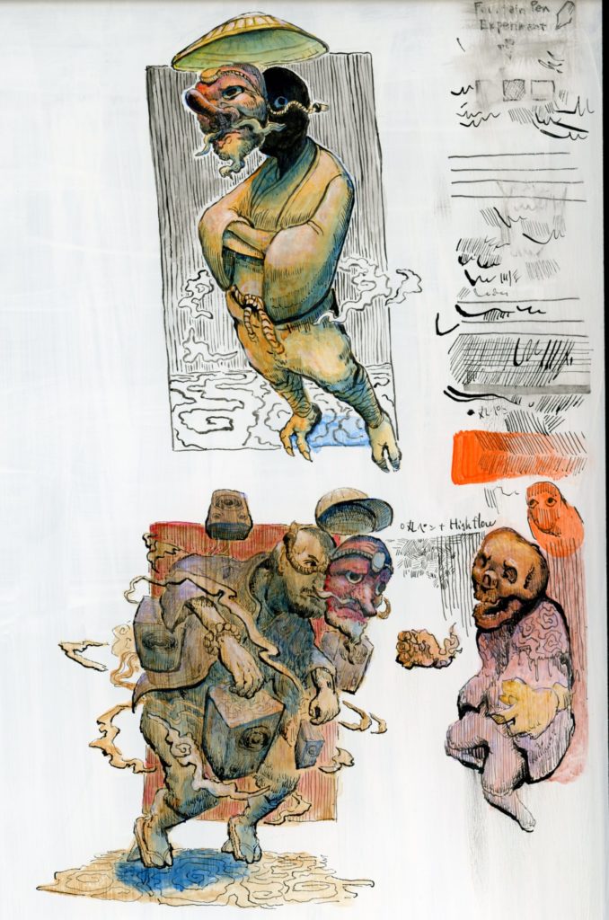 私はいままでポスカ、アクリルガッシュ、油絵、日本画、アクリル絵具、スプレーなど制作スタイルが定まらないこともありましたが様々な画材を使ってきましたが、古い日本の絵の表現や漫画の表現が好きだったとこもあって線で絵を描くドローイングという表現方法にたどり着きました。