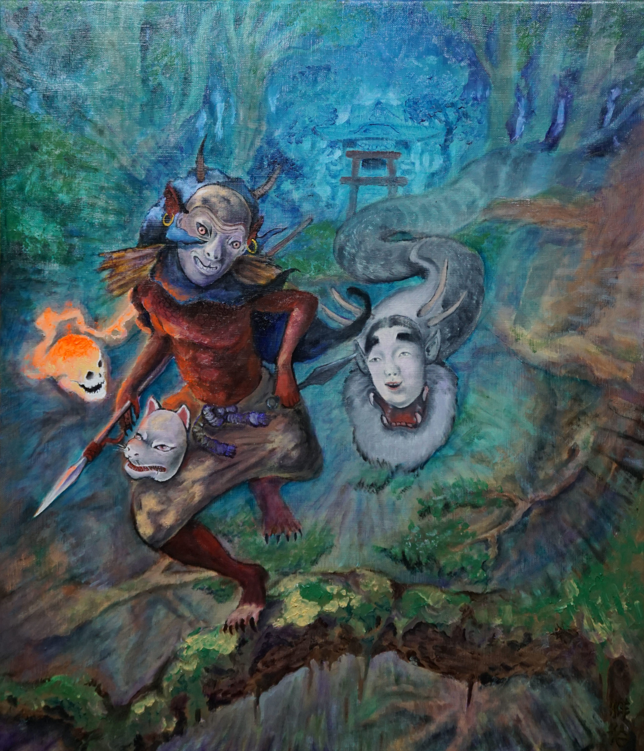 一つ目小僧の重心が向かって左に傾いているので、なんとなく右足を出してこちらにあゆみ寄っているような気がします。